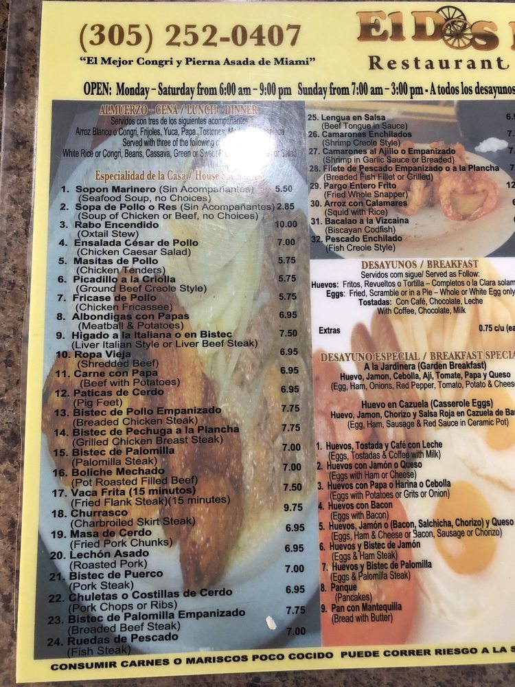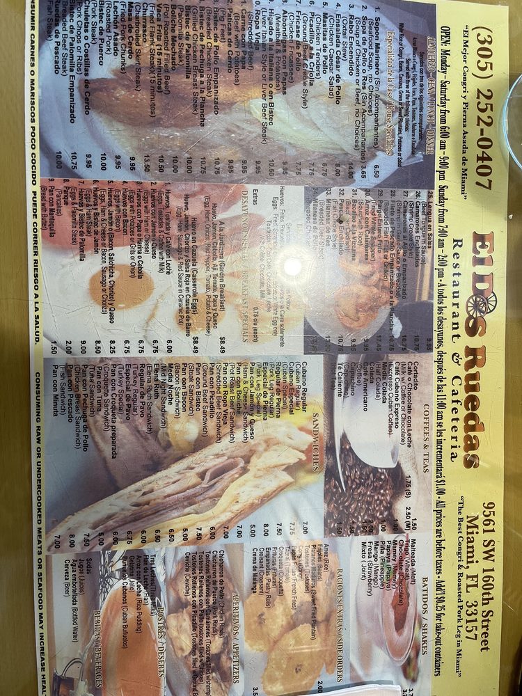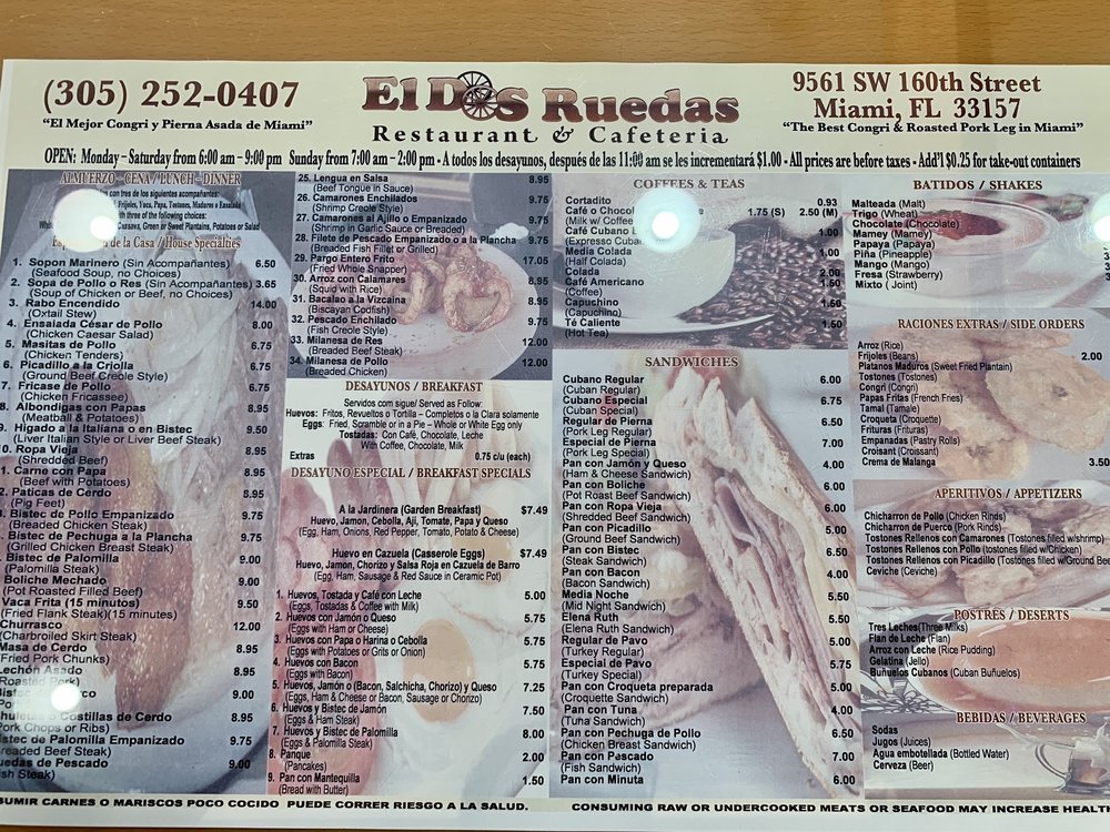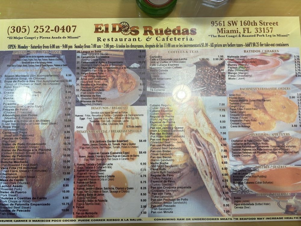 Dos Ruedas Restaurant, a hidden gem in Miami, offers a taste of traditional Cuban cuisine with a modern twist. With a menu that caters to all tastes, from breakfast to dessert, Dos Ruedas is a must-visit for any food enthusiast. Customers rave about the ox tail, served with delectable bread and refreshing batido de trigo. The friendly staff and charming ambiance make every visit a delightful experience. Families, groups, and kids alike will find something to love at Dos Ruedas. The affordable prices and generous portions add to the appeal of this quaint Cuban cafe. Whether you're a fan of Cuban culture or simply craving authentic flavors, Dos Ruedas is sure to impress. Don't miss out on this culinary gem in Palmetto Bay.